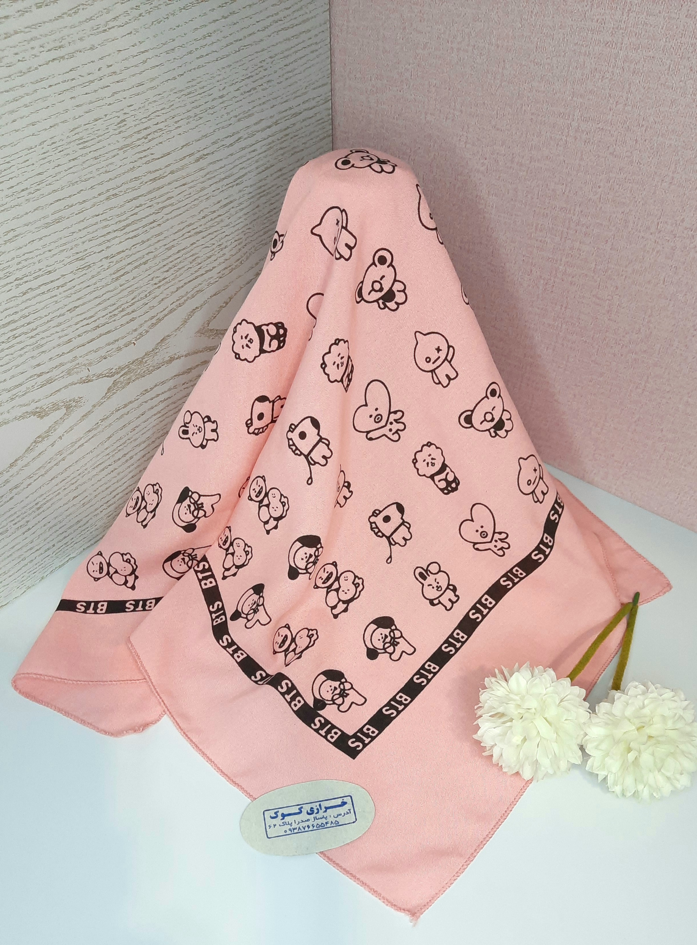 باندانا دستمال سر طرح بی تی اس رنگ صورتی bts